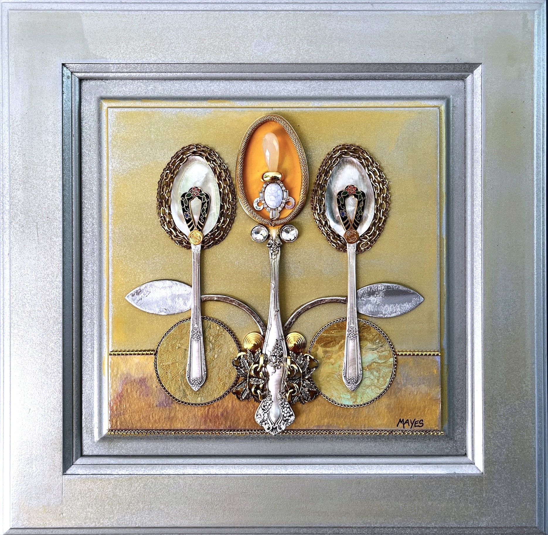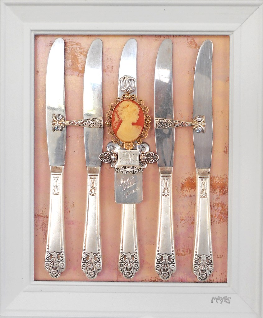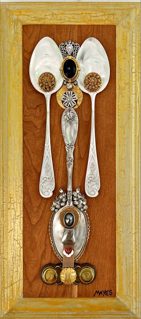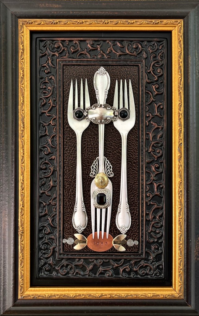 Portfolio of Designs Intertwine (SOLD commission) Five Fristoe Forks (SOLD commission) Midnight Three Triple Garden Spoons Friendship (SOLD commission) Triple Transformation Housewarming (SOLD) Queen CoCo (SOLD) Gold Digger (SOLD) Saloon Girls Bridal Party (SOLD) Zelda (SOLD) Western Women Mother of the Bride (SOLD) Hollywood Starlet (SOLD) Sunset Forks (SOLD) Seven Piece Bling (SOLD) Jennifer (SOLD) Wedding Fork (SOLD) Alison (SOLD) Party of Five Forks on the Horizon Share this: Click to share on X (Opens in new window) X Click to share on Facebook (Opens in new window) Facebook Like Loading...